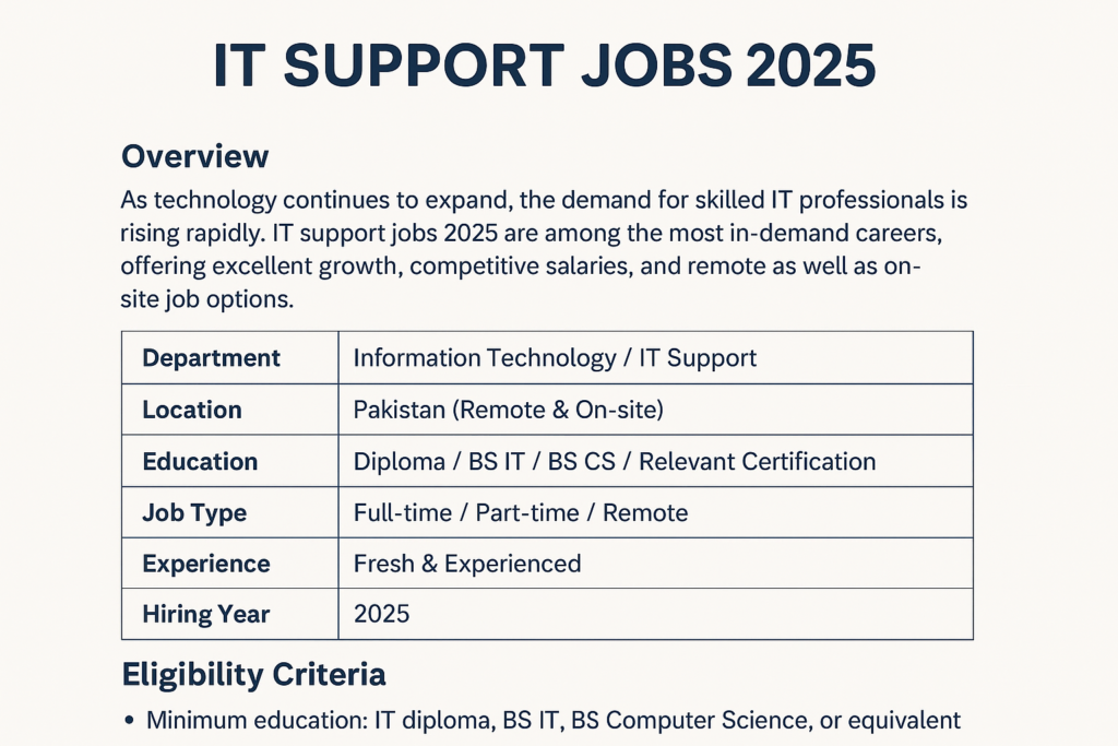 Looking for IT support jobs 2025? Explore the latest opportunities, eligibility criteria, application process, salary details, and more in this complete job guide.